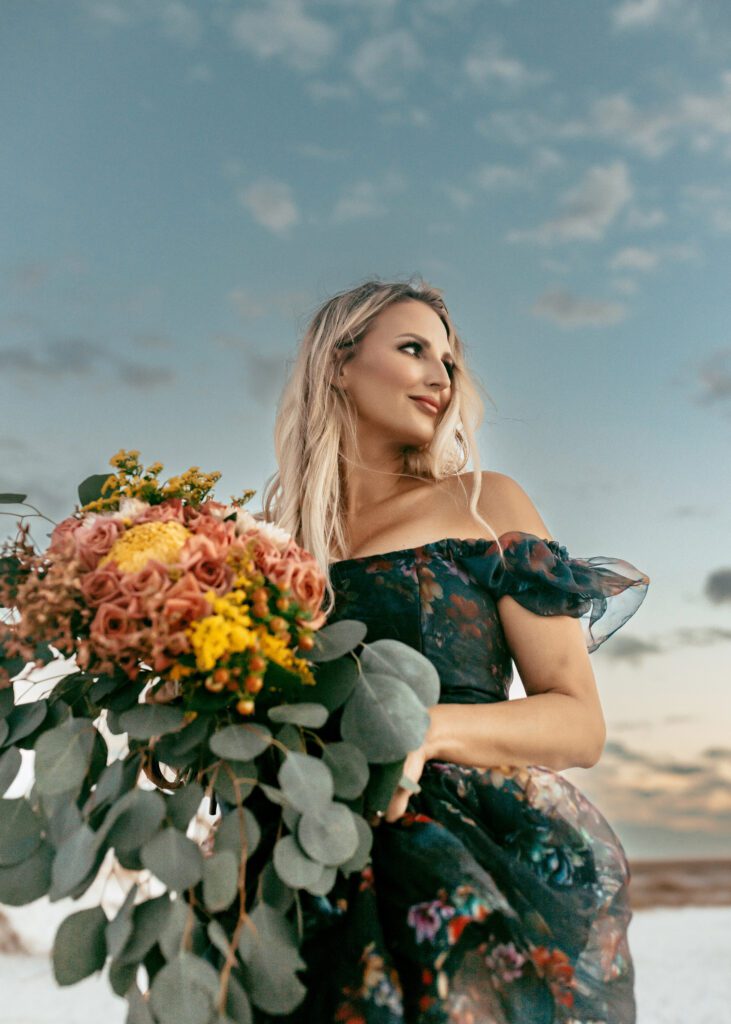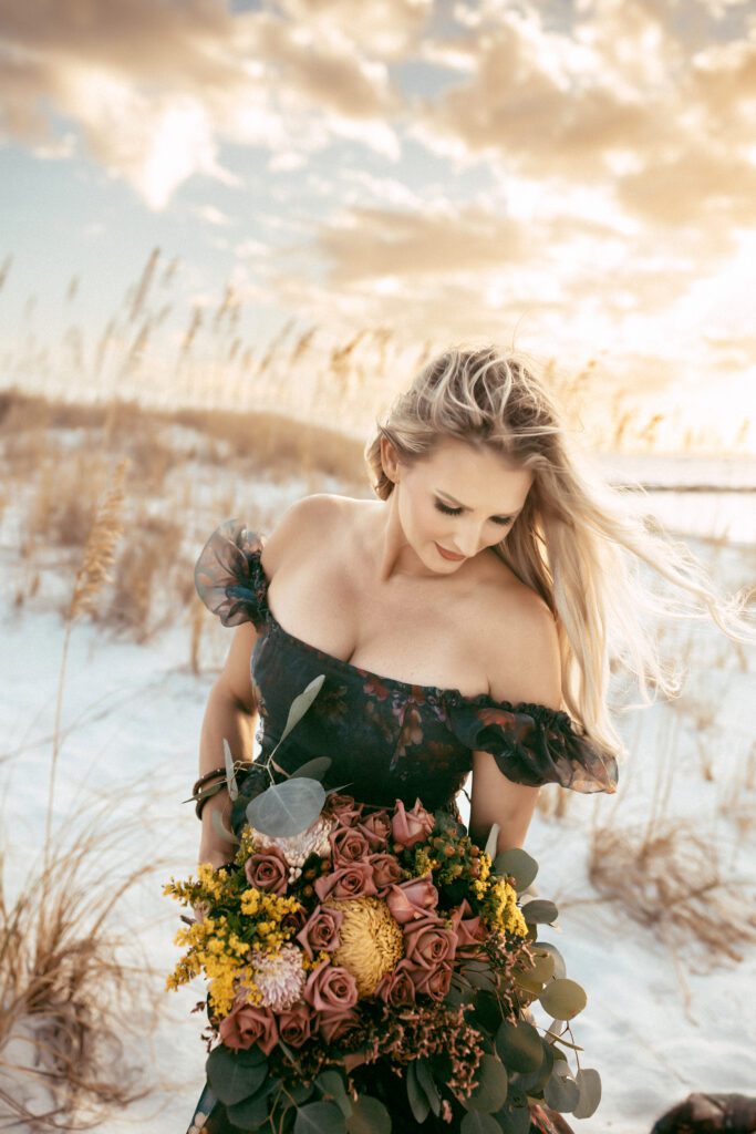To complete the look, the exquisite florals by Bloomin with Faith from Fairhope, Alabama, brought a soft, natural charm that tied everything together perfectly.
